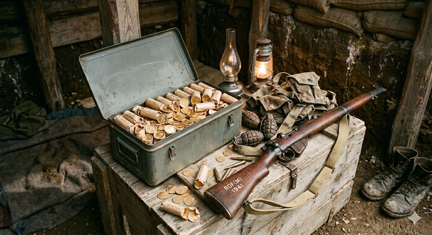 Κάτω από το φως των πυρσών, που έριχναν απόκοσμες σκιές στα βραχώδη τοιχώματα, μια μικρή ομάδα έμπιστων ανταρτών, με επικεφαλής τον λοχαγό Δημήτρη, ξεκίνησε την επικίνδυνη αποστολή της απόκρυψης. Η επιλογή της τοποθεσίας δεν ήταν τυχαία. Μια χαράδρα, βαθιά και απόκρημνη, με απότομες πλαγιές και πυκνή βλάστηση, φάνταζε ως το ιδανικό σημείο. Η πρόσβαση ήταν δύσκολη, σχεδόν ακατόρθωτη για τους μη μυημένους, και τα φυσικά της χαρακτηριστικά προσέφεραν μια τέλεια κάλυψη. Η ομίχλη της νύχτας και το κρύο τρύπαγαν τα κόκαλα, αλλά η ανάγκη για μυστικότητα και η σημασία της αποστολής υπερίσχυαν κάθε δυσκολίας. Με σιωπηλές κινήσεις, οι άνδρες μετέφεραν τα βαριά κιβώτια. Κάθε κιβώτιο περιείχε όχι μόνο χρυσές λίρες – χιλιάδες αγγλικές λίρες, το καθένα ένα μικρό φρούριο πλούτου – αλλά και αυτόματα όπλα, πυρομαχικά και εκρηκτικά, απαραίτητα για έναν ενδεχόμενο μελλοντικό αγώνα. Ο ιδρώτας έτρεχε στα πρόσωπά τους, ανακατεμένος με τη σκόνη και τον φόβο.